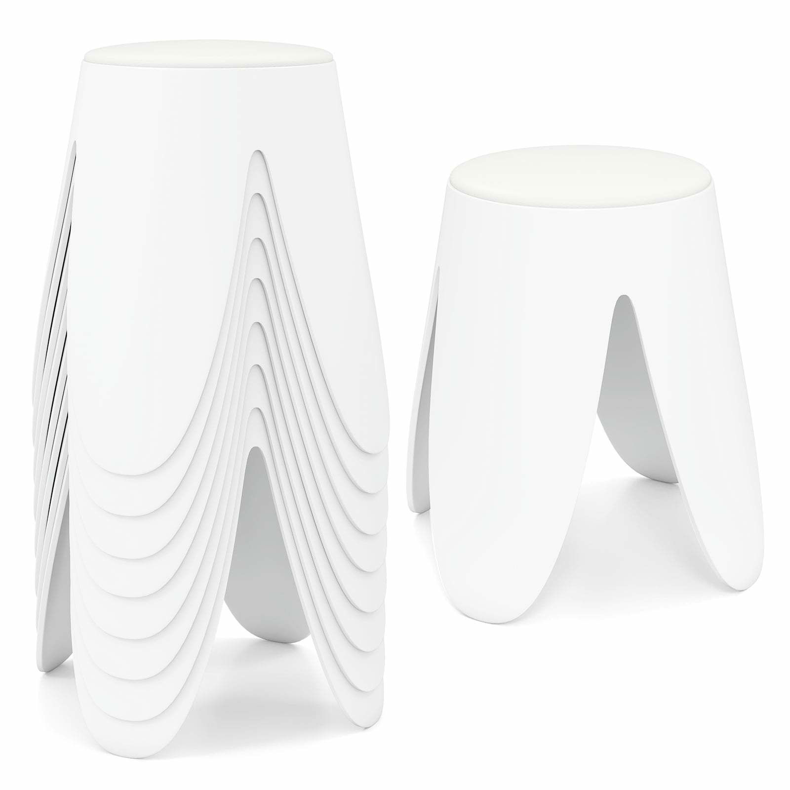 Stapelbara vita pallar, set om 8 med kuddar – platsbesparande
