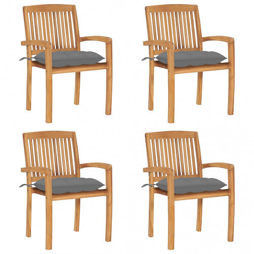 vidaXL Stapelbara trädgårdsstolar med dynor 4 st massiv teak 3073211