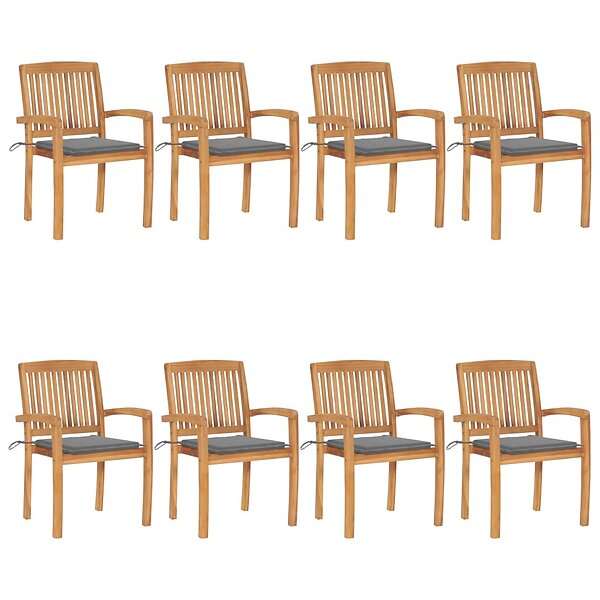 vidaXL Stapelbara trädgårdsstolar med dynor 8 st massiv teak 3073253