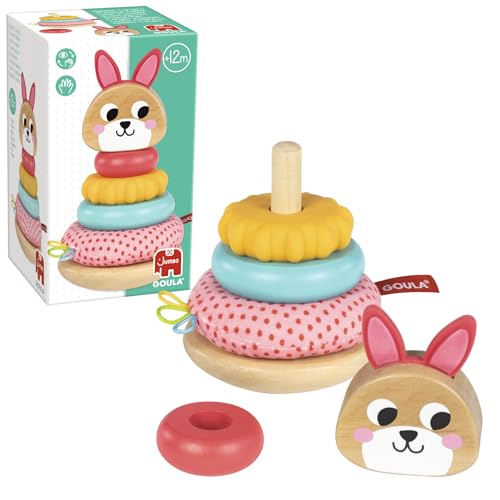 Goula Stacking Rabbit – stapelkanin – sensorisk stapelleksak med strukturerat trä, silikon och tytringar för motoriska färdigheter och känsla – babyleksak för barn från 12 månader