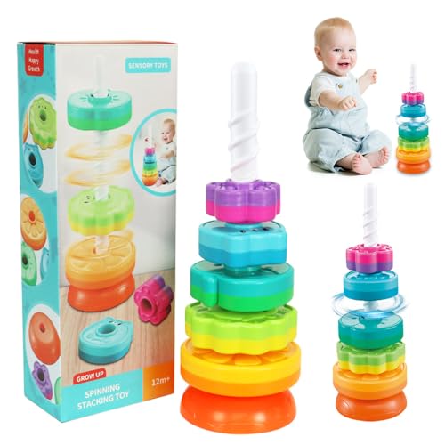 Mineup Spinning Stacking Toys, Rainbow Tower, Kids Stackable Spinning Toy, Regnbågsstorn stapelringar, regnbåge roterande torn stapelleksak för barn från 12 månader