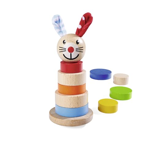 Eichhorn – stapeltorn för bebis, med bottenplatta, färgglada skivor och kaninhuvud, 11 delar. 20 cm högt, 100% FSC-certifierat bokträ, från 1 år