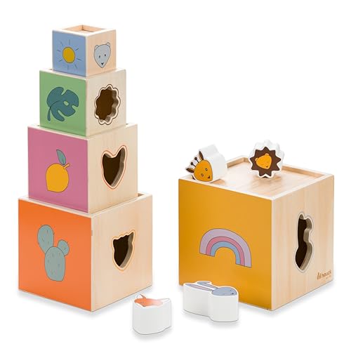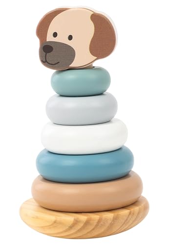 HEJ LØNNE Trästaplingstorn från 1 år – Stapelkub för att främja motoriska färdigheter och nummerförståelse – stapeltorn i trä – motorikleksak – gåva för ett års barn