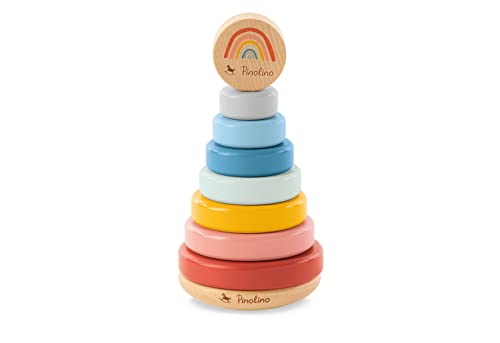 Small Foot Stapeltorn regnbåge, motorikklassiker av trä, färgglatt stapelspel, för barn från 12 månader, 11775 leksaker