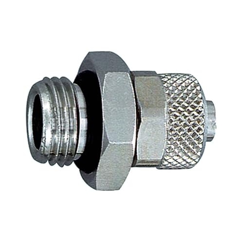 Rak skruvförskruvning, med O-ring, G 1/8 a, för slang 8/6 mm, SW 14, arbetstryck max. 18 bar, förnicklad mässing