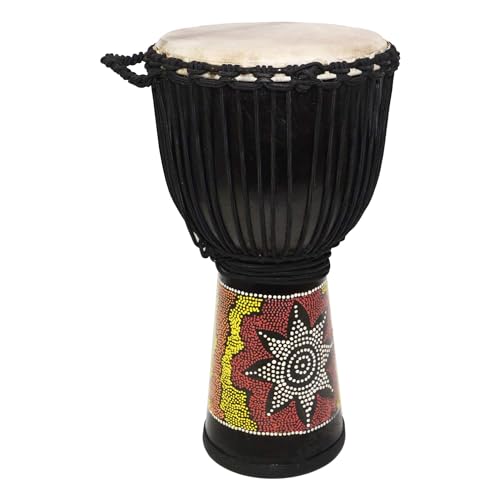 A-Star 12 tum målad färgglad djembe afrikansk trumma - Autentisk handgjord, repavstämd, naturlig hudhuvud - 60 cm höjd, 30 cm diameter