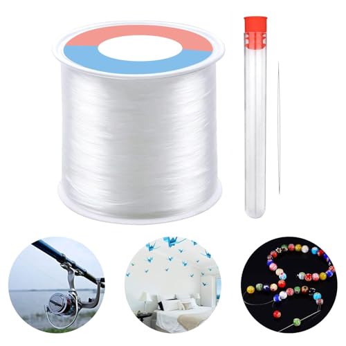 TOKERD 0,6 mm klar nylontråd för hängande dekorationer och sömnad, klar pärltråd stark fiskelina osynlig nylontråd/linje med pärlnål för bröllopsdekorationer