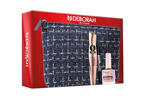 Deborah Milano - Presentset för kvinnor, inkluderar omedelbar maxi-volymmascara med Ceramid, 48 timmar extra svart eyeliner och stärkande nagellack 8,5 ml, nr.6