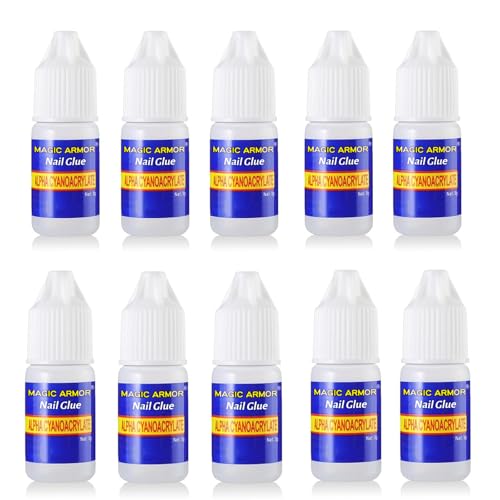 MAGIC ARMOR Nagellim 10×3g nagellim för spetsar nagellim för konstgjorda naglar nagellim extra starkt för reparation av rivna och långsträckta naturliga naglar Nagellim för professionella salonger