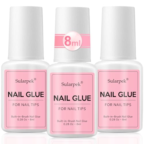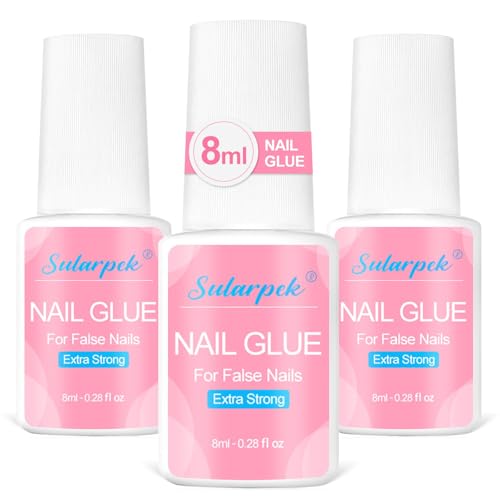 Sularpek Nagellim, 3 stycken 8 ml nagellim för tips, nagellim för konstgjorda naglar, extra starkt nagellim med pensel, professionellt nagellim, för konstgjorda naglar, falska akrylnaglar, naturnaglar