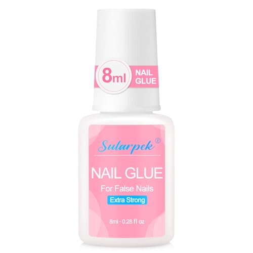 Sularpek 8 ml nagellim, nagellim för konstgjorda naglar extra starkt, extra starkt tiplim, lim för press på nageltips, nagellim gelnaglar med pensel, för falska akrylnaglar, naturnaglar