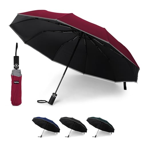 KEPLIN Hopfällbart reseparaply, automatisk öppning och stängning ergonomiskt handtag, golfparaply 10 ribbor, bärbart smalt starkt lätt paraply, resedymt (burnät), Cabernet