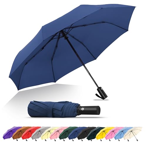 SoulRain-paraplyer för regn, hållbart och kompakt paraply, ryggsäck, handväska, bärbart paraply för resor - automatisk öppning och stängning starkt glasfiber (marinblå)