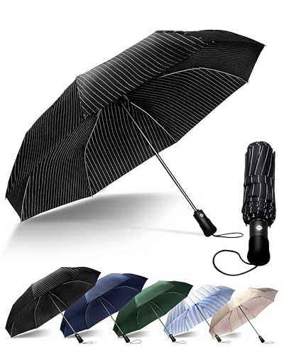 Chakipee kompakt reseparaply vindtätt starkt – automatiskt vikbara paraplyer för vind och regn, bärbart 210T-tyg 97 cm spann – 8 ribbor bärbart paraply för män och kvinnor, 8 ribbor, Svartrandig