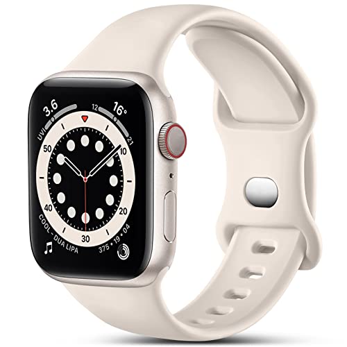 CeMiKa Kompatibel med Apple Watch Rem 38mm 40mm 41mm 42mm 44mm 45mm 49mm, Mjuk Silikon Sportband Ersättningsremmar Kompatibel med iWatch Rem SE/Series 8 7 6 5 4 3 2 1, 38mm/40mm/41mm-M/L, Starlight