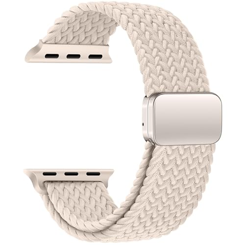Kompatibelt med Apple Watch-band 38mm/40mm/41mm/42mm. Flätat damband, Justerbart nylonband med magnetfäste för Apple Watch Serie 10/9/8/7/6/5/4/SE. Elastiskt tygband för Apple Watch Starlight
