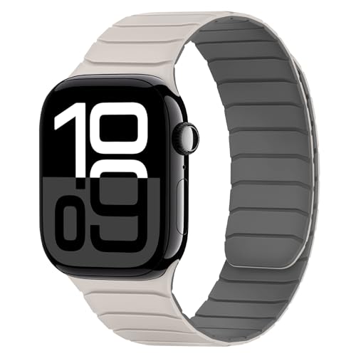 Tasikar Magnetiskt armband kompatibelt med Apple Watch 42 mm (Serie 10) 41 mm 40 mm 38 mm mjuk silikon ersättning slinga armband kompatibelt med iWatch SE Series10 9 8 7 6 5 4 3 2 1, Starlight grå