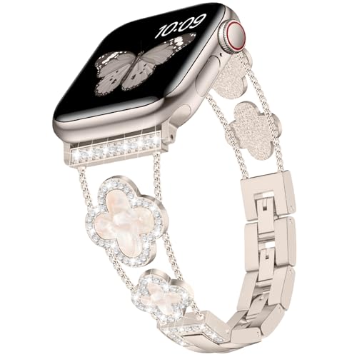 Tasikar Bling Diamond Damarmband Kompatibelt med Apple Watch Armband 49mm 46mm 45mm 44mm 42mm 41mm 40mm 38mm Ultra SE serien 10 9 8 7 6 5 4 3 2 1 Lucky Clover Dressy Ersättningsarmband (Starlight)