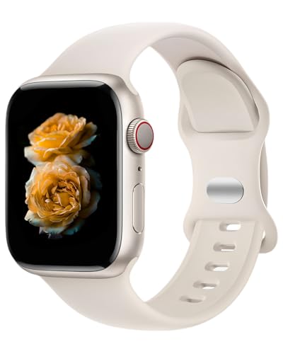 Sportarmband i silikon Compatible with Apple Watch Dam & Herr (38/40/41/42/44/45/46/49mm) – Mjukt, vattentåligt sportarmband för iWatch Ultra3/2/1 SE3/2/1 Series11/10/9/8/7/6/5/4/3/2/1, Starlight