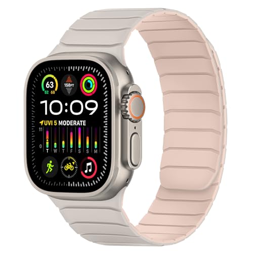 Tasikar Magnetiska remmar kompatibla med Apple Watch 49 mm 46 mm 45 mm 44 mm 42 mm mjukt ersättningsarmband i silikon kompatibelt med iWatch Ultra SE-serien10 9 8 7 6 5 4 3, Starlight-rosa