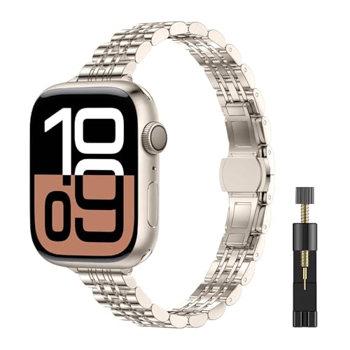 MoKo Slim Metal Band Compatible with Apple Watch Series 10 42mm, 9/8/7 41mm, SE2/SE/6/5/4 40mm, 3/2/1 38mm, Stainless Steel Thin Band Replacement Strap iWatch Wristband for Women, Starlight