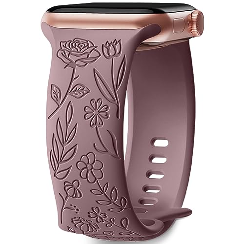Mastten Armband med blomgravyr kompatibelt med Apple Watch 42/44/45/49 mm, mjukt silikon och elegant rosa blommönster för iWatch Series 9, SE, 8, 7, 6, 5, 4, 3, 2, Starlight (vit)