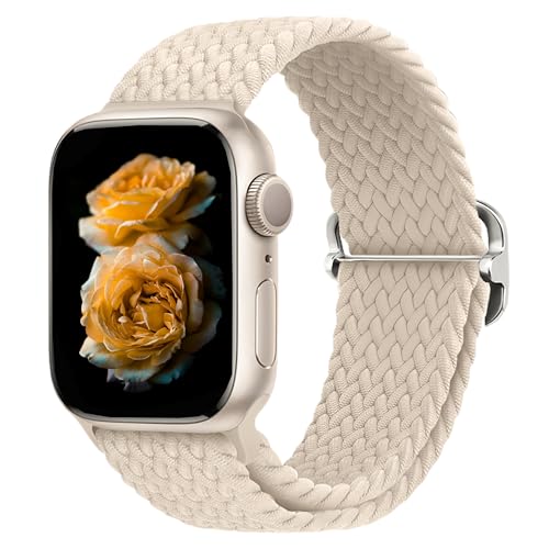 Justerbart Loop-band Compatible with Apple Watch Ultra3/2/1 SE3/2/1 Series11/10/9/8/7/6/5/4/3/2/1 – Vävdat, andningsbart nylonarmband med säker spänne (38/40/41/42/44/45/46/49 mm), Starlight