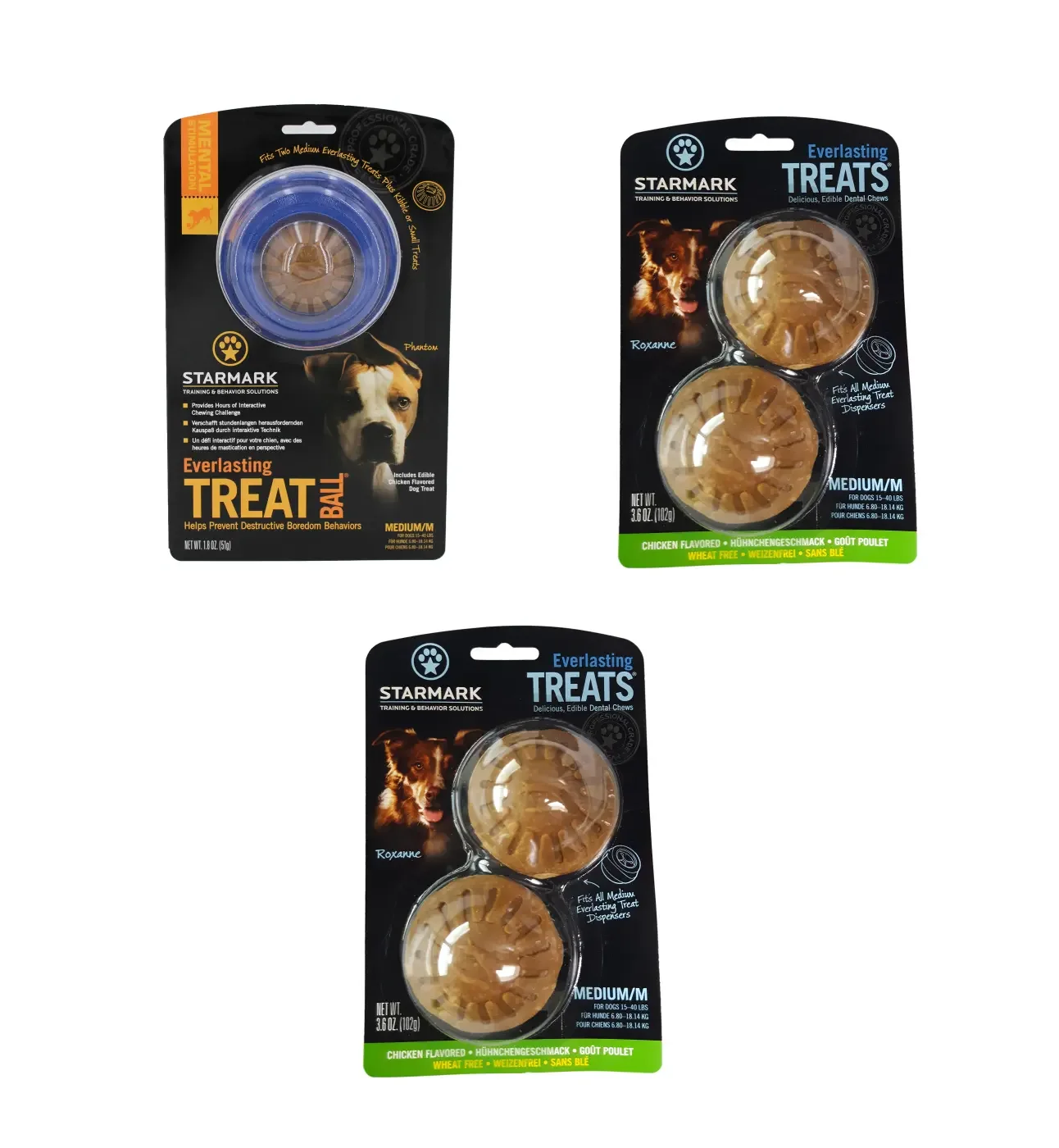 Starmark - 1x Everlasting Treat Ball - M + 2x Refill Treat Chicken - M