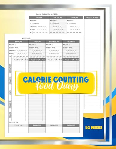 52-Week Calorie Counting Food Diary: A Daily Meal Planner and Weekly Logbook to Track Food Intake, Calories, and Exercise for Weight Management. Monday Start, Large Print (8.5" x 11"), 109 Pages.