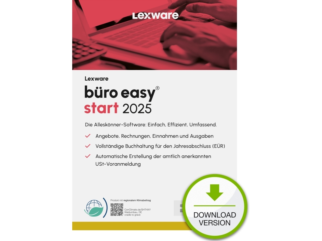 Lexware Büro Easy Start 2025 Download Jahresversion (365-Tage), Bokföring, Esd (Electronic Software Download), Tyska, 1 År, Windows 11 Enterprise X64, Windows 10, Windows 11 Home, Windows 10 Education, Windows 11 Pro,...
