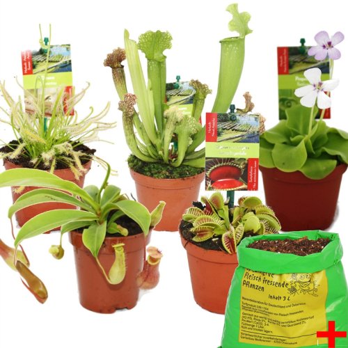 Exotenherz - Startsats köttätande växter – 5 växter + jord – karnevorenjord