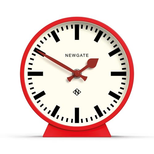 NEWGATE® M Mantel Railway tyst svepande mantelklocka – 'inget tick' – en modern spiselklocka – liten klocka – klockor för vardagsrum – kontorsklocka – skrivbordsklocka – mantelklockor – stationsklocka (röd)
