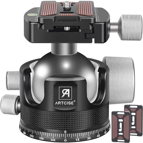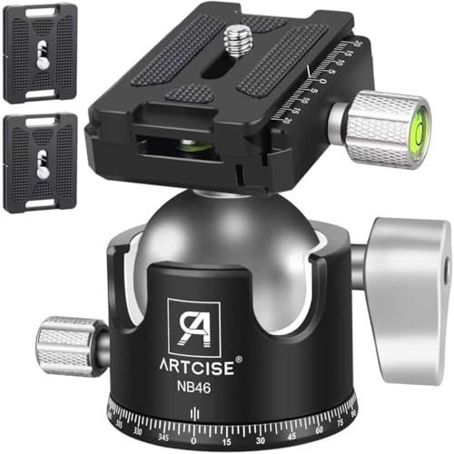 ARTCISE Kulhuvud med låg profil, 46 mm 360° panorama metallstativhuvud med Arca 1/4 tum snabbfrigöringsplatta och 1/4 tum till 3/8 tum konverteringsskruvgängadapter för stativ slider DSLR, maximal