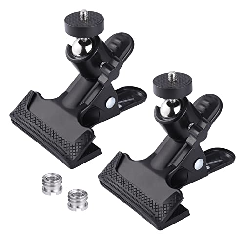 Hejo Multifunktionell kameraklämma, 2 st metallkameraklämmor med 2 st 1/4 tum till 3/8 tum skruvadaptrar, reflektorklämma 1/4 tum kulhuvud skruv för DSLR-stativ studiobakgrund
