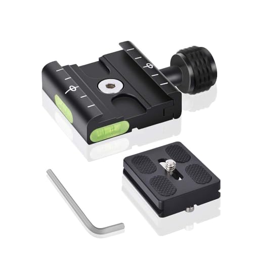 UTEBIT 50 mm snabbkopplingsplattklämma, universell kameramontering QR-klämma inbyggd vattenpass med 1/4 och 3/8 skruvadapter kompatibel med Arca-Swiss Standard för DSLR monopod stativ kulhuvud