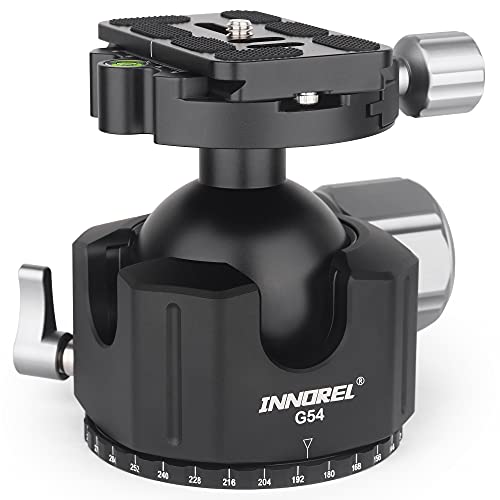 Lågprofilstativ kulhuvud-INNOREL G54 Panorama CNC metallkamera stativ kulhuvud med 1/4" Arca Swiss Quick Release-platta för stativ, monopod, DSLR, videokamera,Max belastning 30 kg
