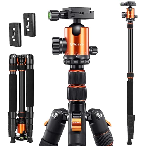 Victiv Kamerastativ, lätt aluminiumstativ för resor, DSLR-stativ med 3-vägs svängbart huvud för 360 graders panoramafotografering för DSLR, YouTube, levnadsvlog, 183 cm (72 tum), orange