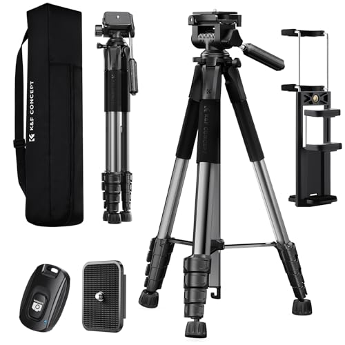 K&F konceptkamerastativ, 75 tum lätt bärbar resa utomhus DSLR-stativ för kamera telefon videoinspelningsstativ, mobiltelefonklämma för smartphone livestreaming vlog, (mörkgrå)