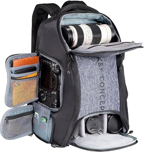 K&F Concept kameraryggsäck 30 L, professionell stor fotoryggsäck, kameraryggsäck vattentät, reseryggsäck för DSLR/stativ/hjälm, för 15 tums bärbar dator, lämplig för klättring/vandring/resor, 1- svart