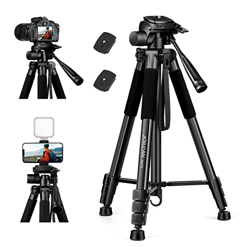 JOILCAN Kamerastativ för Canon Nikon Sony, 65 cm stativ i aluminiumlegering med avtagbart huvud och telefonhållare och bärväska, lätt DSLR-stativ för smartphone/Vlog/streaming, maxbelastning 5,5 kg