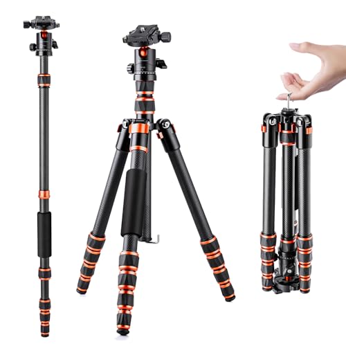 K&F Concept Kamerastativ, Lätt Resestativ i Kolfiber, Kompakt Stativ för Fotografering med Enbensstativ, 360° Kulhuvud och Utlösningsplatta för DSLR Kamera C225C0+BH-25(BA225)