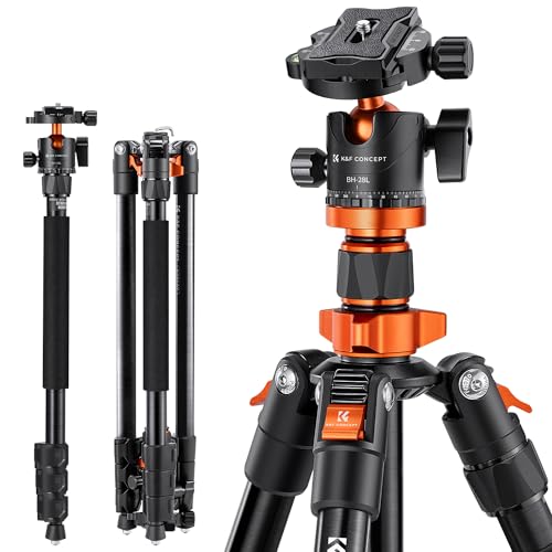 K&F Concept Kamerastativ,158cm Resestativ i Aluminium med Monopod,Kompakt Stativ med Kulhuvud och Utlösningsplatta för DSLR Kamera Canon Nikon Sony K254A1+BH-28L(SA254M1)