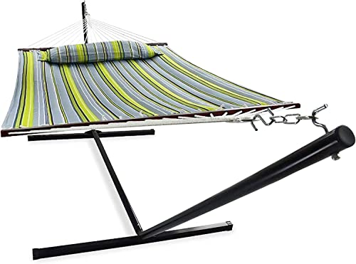 VITA5 Hängmatta med stativ och avtagbar kudde, slitstark, 204 kg kapacitet, rymmer 2 personer, perfekt för inomhus/utomhusuteplats, däck, gård (Green/Blue)