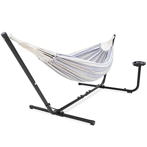 VITA5 dubbel hängmatta med stativ, med manschetthållare, upp till 2 personer/204 kg kapacitet, 210 x 140, med bärväska (Beige)