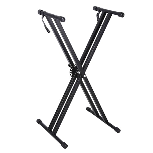 Dubbelspänt X-ram tangentbordsstativ, vikbart förstärkt tangentbordsstativ, höjdjusterbart stativ för piano elektroniska tangentbord för 61 till 88 tangentbord och digitala pianon