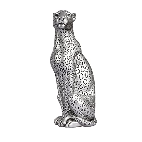 POLYDUKE Silver Gepard 28 cm H staty, gepardstatyett sittande heminredning realistisk antik klassisk leopard harts djur prydnad statyer vardagsrum dekor prydnad statyett