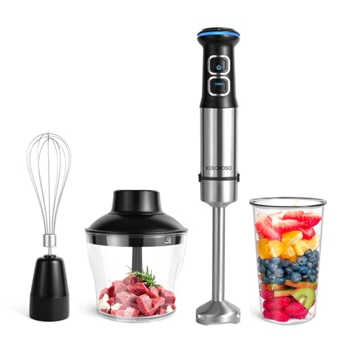 Kolohoso 1500W Stavmixer Set, 4 i 1 Hand Mixer Rostfritt Stål, Stavmixer med 21 Justerbara Hastigheter, 4 Rostfria Mixerfötter, Mixer Set med 600ML Hackare, 800ML Mätbägare, Visp, Fri Från BPA
