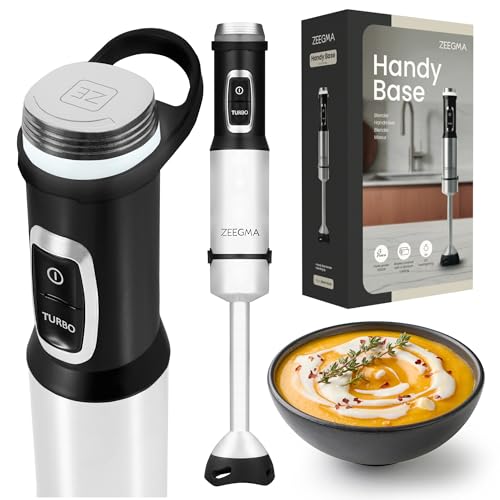 Zeegma Handy Base Stavmixer 1500W – Tystgående, Ergonomisk Design, LED-belysning, Titatbelagda Blad, Justerbar Hastighet, Turboläge, Enkel Rengöring, Inkluderar Visp och Hackare