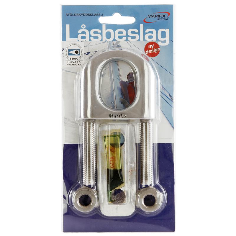 Låsbygel / stävögla med täckplatta, klass 3, rostfritt syrafast stål (A4 / AISI 316, marinklass), M12 x 48 mm, 122 mm