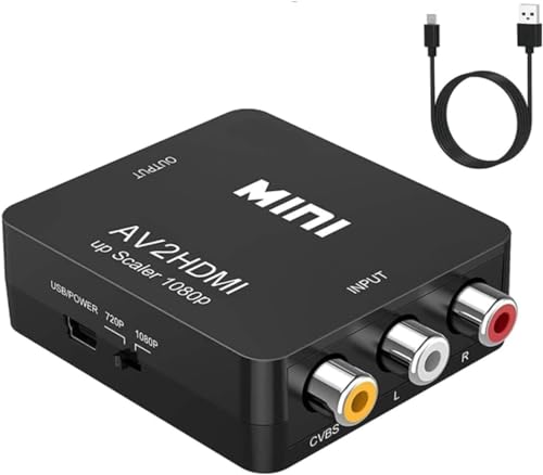 ABLEWE RCA till HDMI-omvandlare, AV till HDMI-adapter 1080P mini cinch komposit CVBS videoljudomvandlare adapter – stöd för PAL/NTSC för TV/PC/PS3/STB/Xbox VHS/VCR/Blu-Ray DVD-spelare.